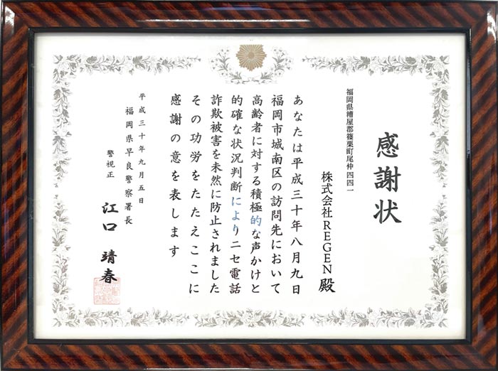 お客様先にて特殊詐欺の被害を防ぎました。